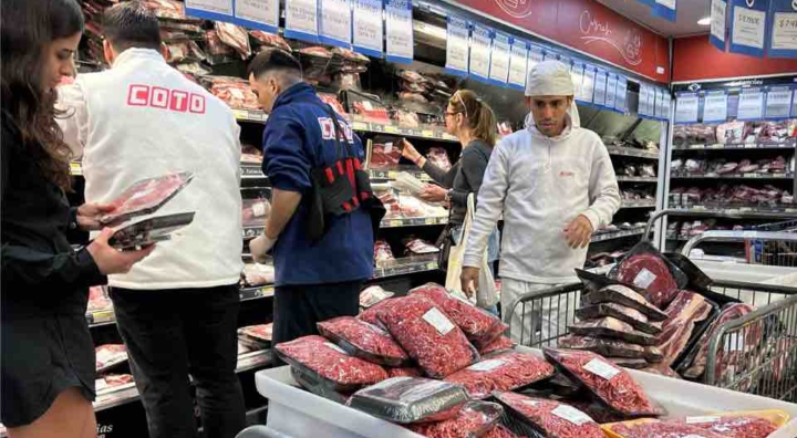 Personas compran carne de res en un supermercado de Buenos Aires el 10 de septiembre de 2025. (Foto por STRINGER / AFP)