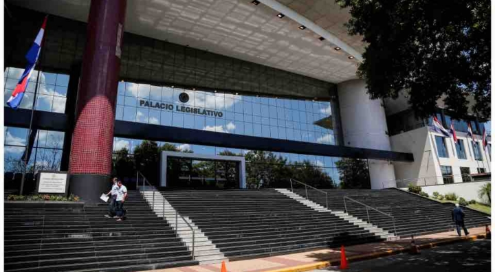 Personas caminan por la escalinata del Palacio Legislativo de Paraguay, construido como una donación del gobierno taiwanés, en Asunción, Paraguay, 3 de marzo de 2026. REUTERS/César Olmedo