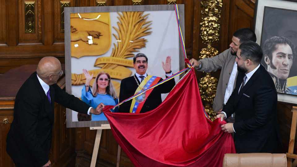 FEDERICO PARRA / AFP Foto por FEDERICO PARRA / AFP El presidente de la Asamblea Nacional de Venezuela, Jorge Rodríguez (izq.), Yosser Gavidia Flores, hijo de Cilia Flores, y el diputado Nicolás Maduro Guerra, hijo del derrocado presidente Nicolás Maduro (der.), desvelan un retrato del líder izquierdista Nicolás Maduro y su esposa, Cilia Flores, durante la ceremonia de juramentación de la presidenta interina de Venezuela, Delcy Rodríguez, en la Asamblea Nacional en Caracas, el 5 de enero de 2026.