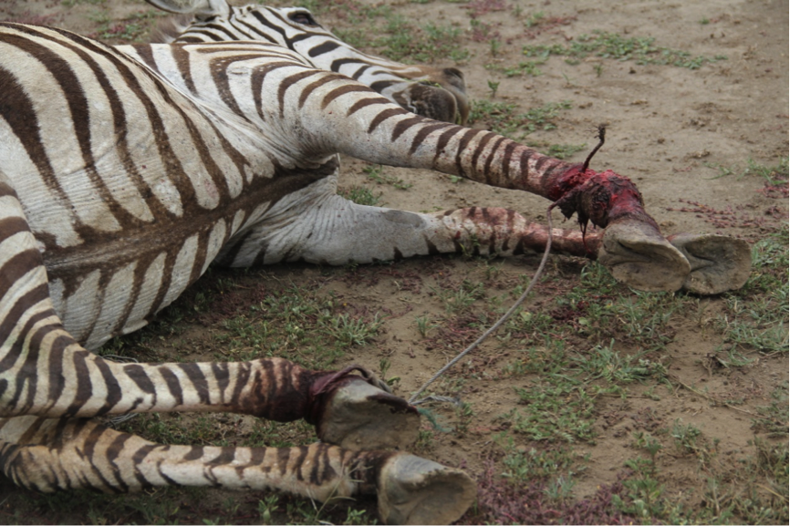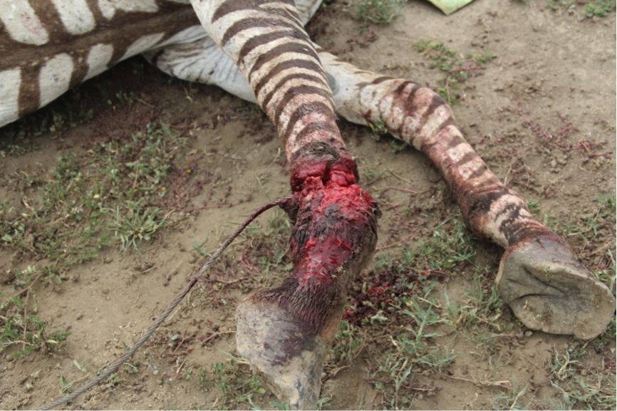 你是否能够想象?斑马的腿可以被这些铁丝折磨成这样?