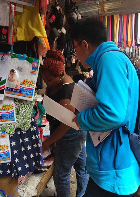 This survey, conducted between July and August 2016, is an attempt to understand the image and attitudes of Chinese people in Kenya held by locals. To do so, we received 459 questionnaire responses from Kenyan citizens. To access a diverse set of perspectives (we did not have to resources to attempt a representative sample), we distributed the surveys in a variety of neighborhoods, at markets and malls, and a university. 56% of respondents are male, while 39% are female; 5% did not answer. The majority of respondents are young and well educated: 45% are between 17-26 years of age; 32% are between 27-36; and only 5% are older than 46. Almost 70% of respondents have at least a college degree. As for their interaction with Chinese people, 40% of respondents reported to have had a few conversations with Chinese people; 24% have worked with Chinese people in a business setting; and 13% have interacted with Chinese people socially. Nearly 10% of respondents claim to work for a Chinese company.