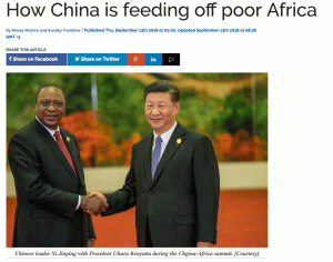 Kenyan media, like those in other African countries, generally covered the FOCAC financial announcement with high levels of skepticism, suggesting that more Chinese loans will only worsen the country’s increasingly dire financial situation. One after another, headlines screamed across Kenyan media to portray China as a predator. “How China is feeding off poor Africa ” and “China a threat to Kenya’s economy” represent the negative tone of the coverage and the widely-held belief that Kenya was handing over its economic destiny to China.